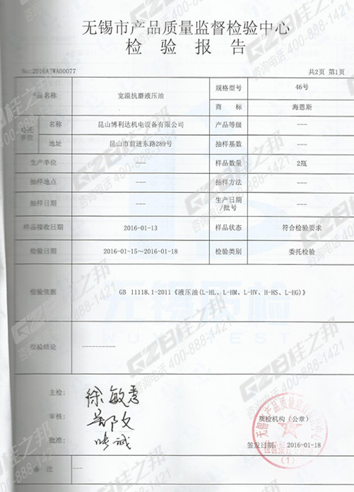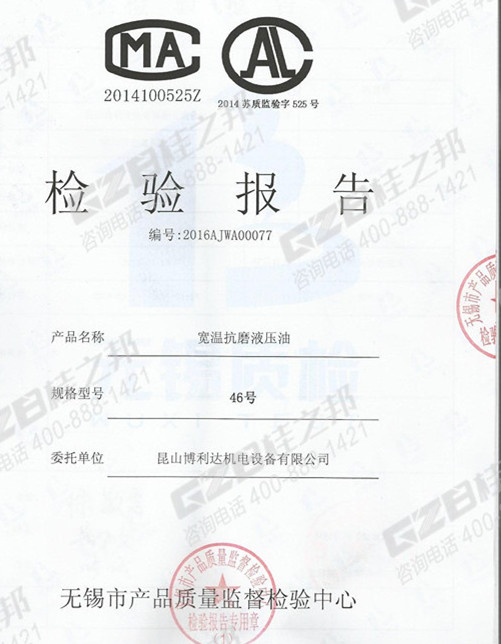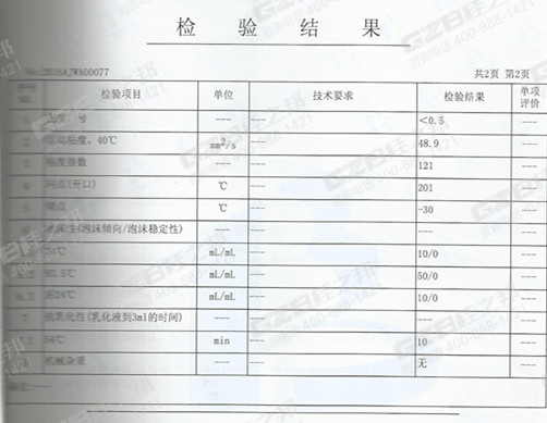 附:液壓油檢驗報告